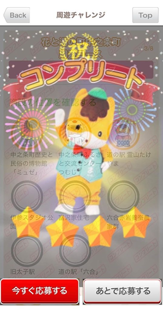 スタンプが応募できるまで貯まるとコンプリートと出てくるので、