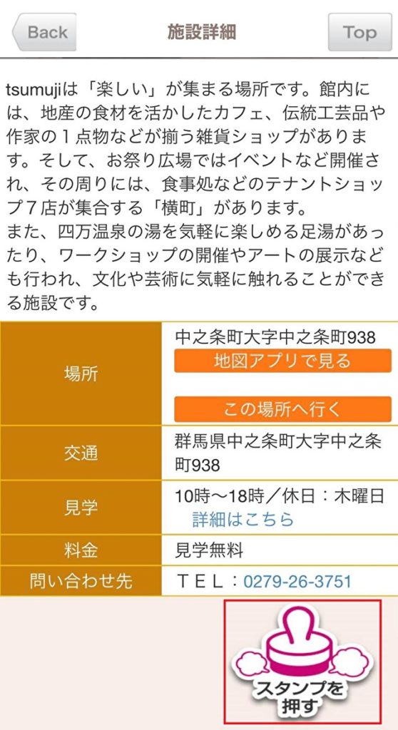 例えば、『中之条ふるさと交流センターつむじ』をタップしてみます。